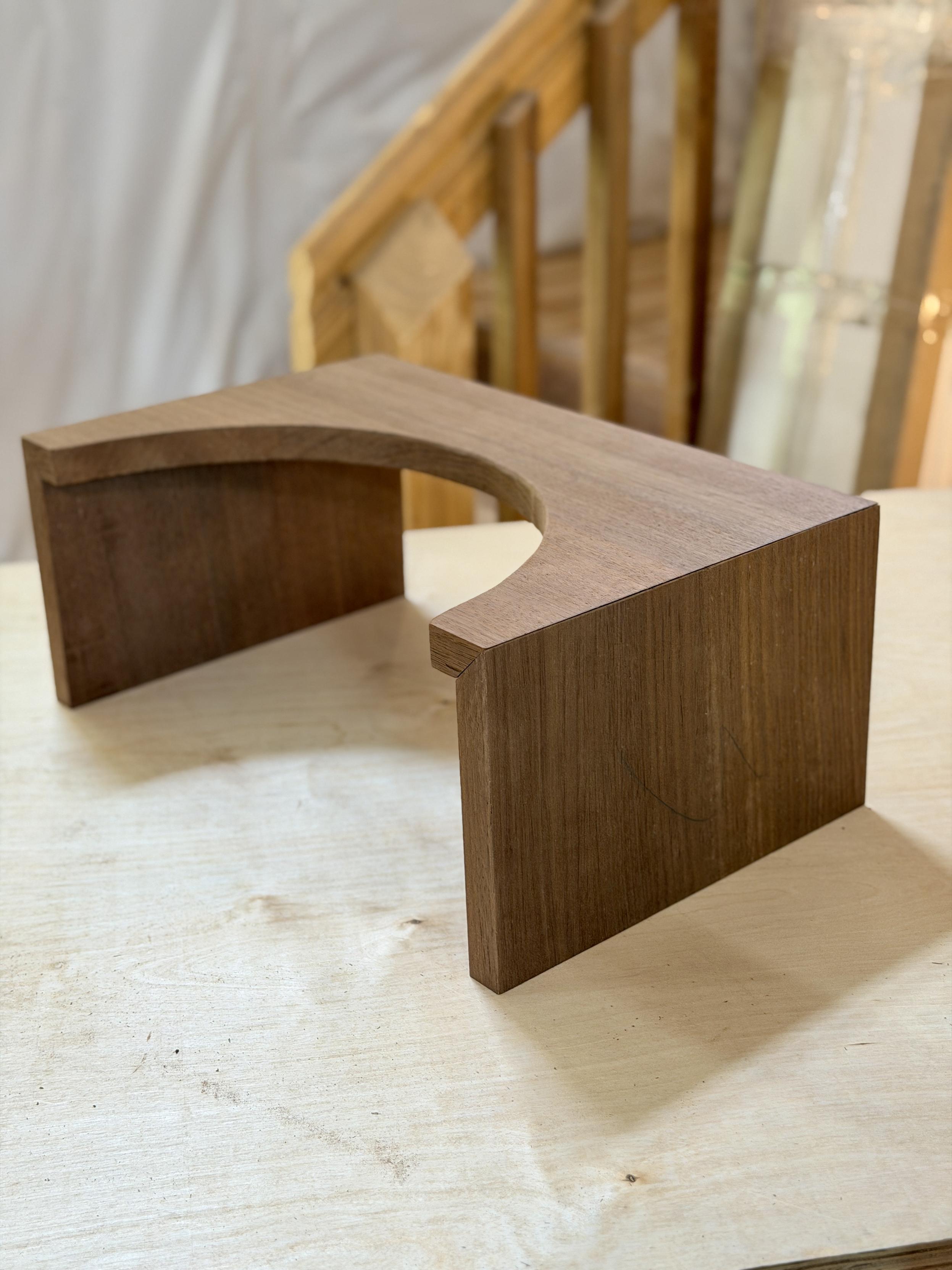 For my daughter’s birthday, I know she misses a squatty potty she left at our house. Now she’s in her own townhouse at college, so I built her the most bougie version imaginable. Solid walnut, 45° miters, hidden domino joinery, and grain-matched waterfall edges. Just need to sand and finish now.