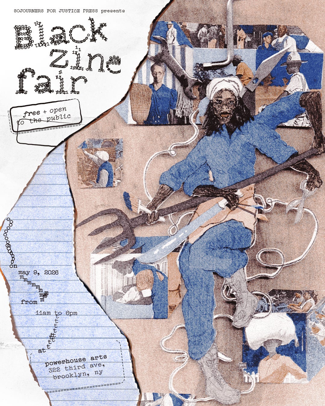 It’s hard to believe that we are only a month away from the 3rd Annual Black Zine Fair. Organized by Sojourners for Justice Press and hosted by Powerhouse Arts, the fair invites visitors to freely gather, trade and sell zines while exchanging knowledge about self-publishing, grassroots print culture, and the traditions of Black radical publishing. This year, we will be joined by over 100 Black artists, writers, publishers, educators, and collectives for a free, public celebration of independent publishing and do-it-yourself culture. Some of the exhibitors include 8-Ball Community, Afi Venessa Appiah, Auto(nomous) Body Shop, Binch Press, Black Salt Press, Bre’s Tiny Print Shop, Hammer and Hope, Marmoris Press (the debut press of Jenna Wortham), MONOLITH, Ralph’s Beach Parties, Shadowbanned Magazine, Support Ho(s)e Collective, The Chicory Project, Third World Press Foundation, and Zoë Pulley, among many others.