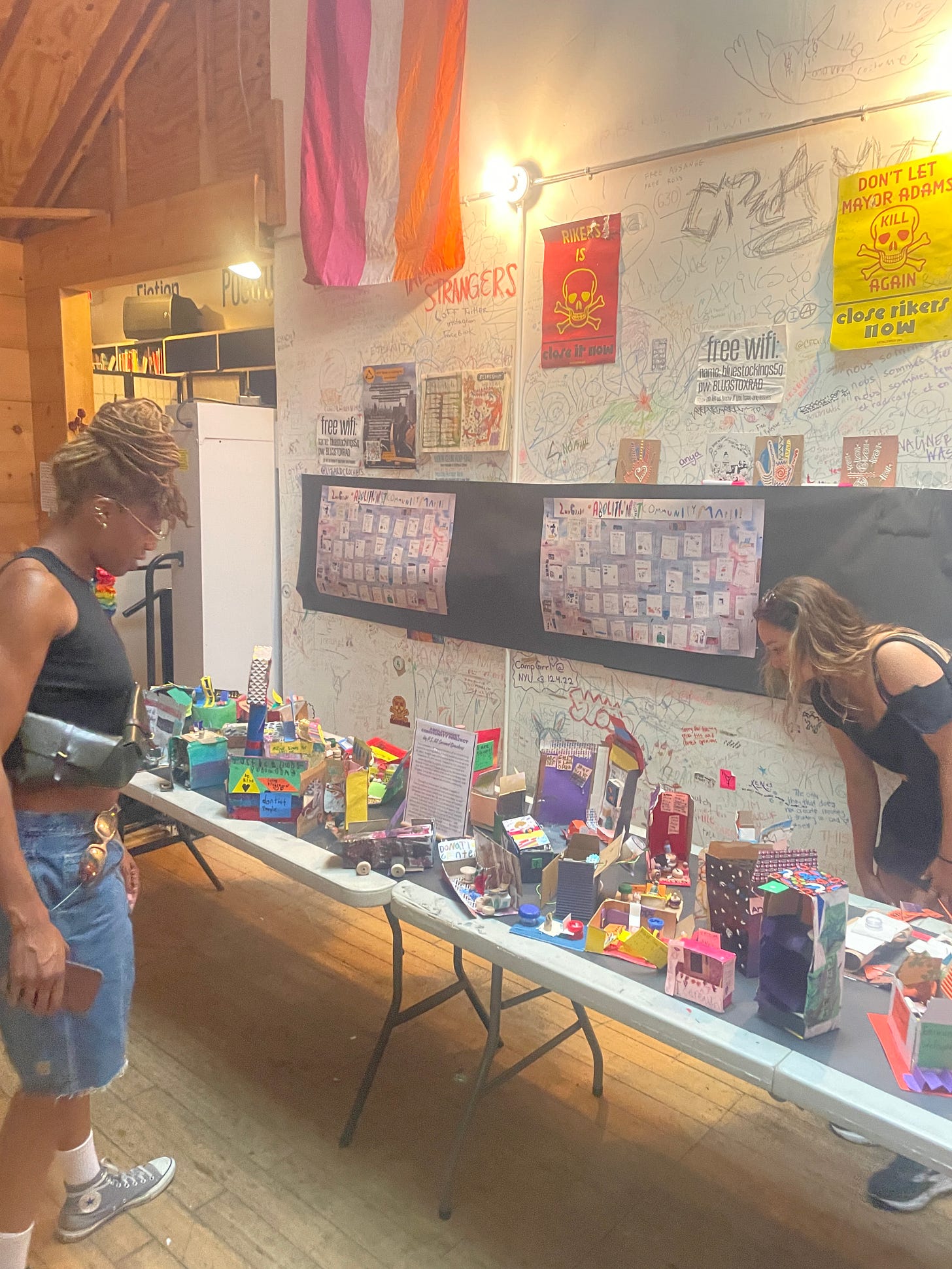 The Warehouse exhibition opened to a packed house at Bedford Library on Saturday. I can’t put my feelings into words but the most meaningful part of the afternoon for me was getting to hug my comrade Stevie Wilson in person. Stevie was finally released from prison in February and traveled from Philly to the opening. It’s such a miracle any time our people get free. The exhibition is open through June 28. Please visit and bring your friends. It’s free and open to the public.