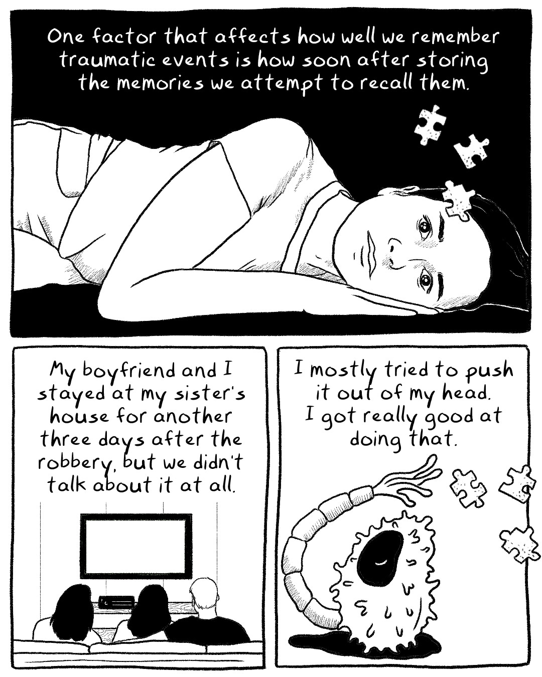 Your friend texts you out of the blue to say, “I just got raped at the bank.”