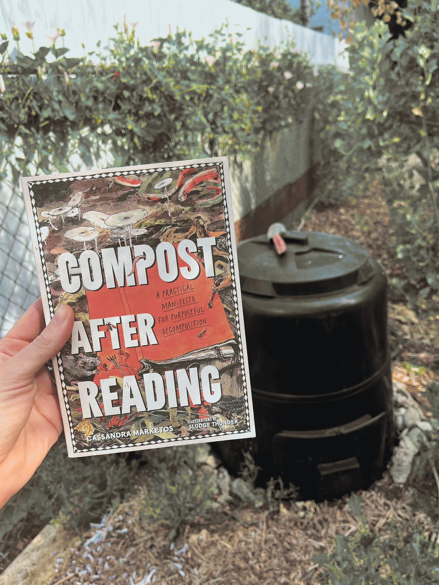 Speaking of soft technologies and the power of the biodegradable, my friend Cass Marketos, an artist and community composter, has just published a manifesto and how-to guide called Compost This Book. Cass has an expansive practice. As an artist, she’s composted memories and ideas; as a composter, she is practical, improvisatory, and welcoming. Her hands are always dirty with good Earth. If you like my work, you will love hers. She also writes an excellent newsletter called The Rot.