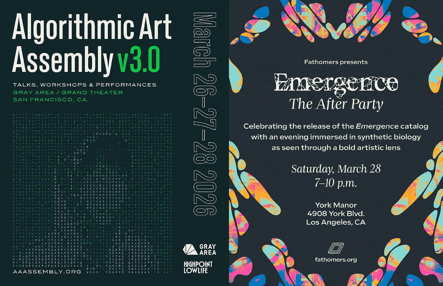 March 28: On March 28th, there will a party in Los Angeles to celebrate the publication of the catalogue for Emergence, a 2024 Fathomers exhibition exploring The Intersection of art and synthetic biology (I wrote an essay about one of the pieces in the show, a human tear gland “organoid” that cried tiny tears throughout the opening). It’ll be a science rager, with a chanting astrophysicist, a “Petri DJ,” and a dance performance about collapsed stars. I’ve been invited to end the evening with a biology-inspired DJ set, so expect goopy tunes and Barbara McClintock soundbites. If you’d like to come, enter the code AFTERLIFE50 for half-off tickets.