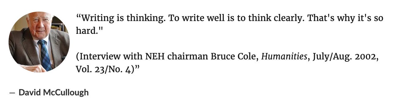 I always think of the Field Notes tagline of “I’m not writing it down to remember it later, I’m writing it down to remember it now” plus that classic line about “Writing is Thinking” … putting these thoughts down in this Substack is definitely helpful.