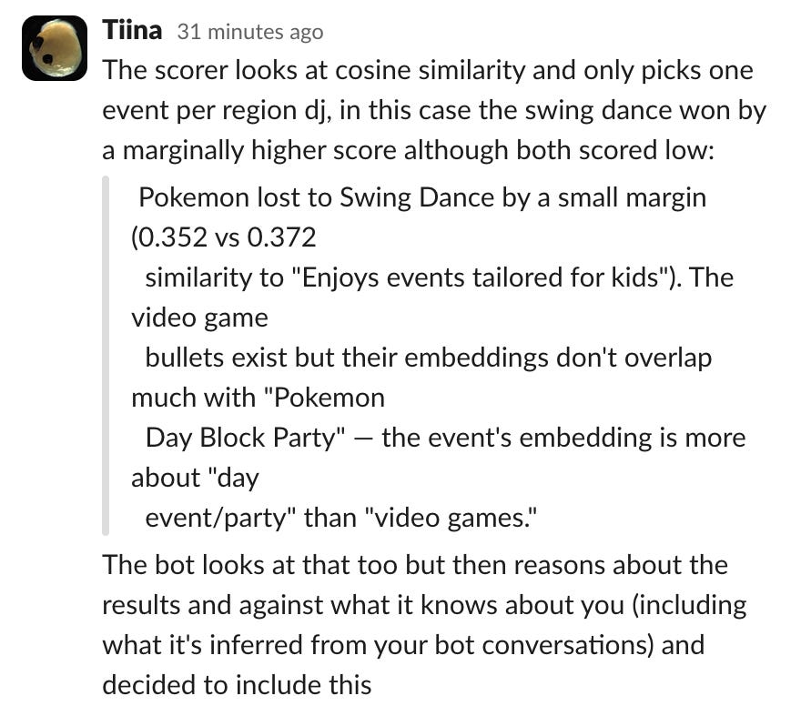Re: debugging. In case you were wondering what happened (aka: how the BeeBot sausage is made), see below (and thx Tiina!) BeeBot is an equal mix of Human Code + Claude Code, human UGC and newsletters/Substacks, math and art. IMHO, product design is art and we are artists. And this one is looking good, but not quite finished.